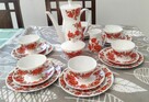 Zestaw kawowy: dzbanek, dzbanuszek do kawy, cukiernica, 6 talerzy deserowych, 6 filiżanek z podstawkami. CP Lettin, ...